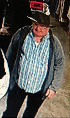 He was initially wearing a white and blue chequered shirt, a grey zip-up hoodie, black pants and a brown hat.