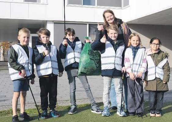 buiten de schoolpoort. “Bij de Wereldster hebben ze gelukkig al grijpertjes om veilig dingen op te pakken. Meerssen is een gemeente die meteen is aangehaakt bij PickitUp, in 2023. Ik was al bij andere scholen in de gemeente en tijdens de Kinderboekenweek heb ik in de bibliotheek voorgelezen. Daarna zijn we in de buurt op pad gegaan. We kwamen toen wel heel veel zakjes met hondenpoep tegen.”