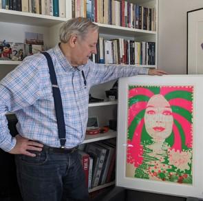 We gaan naar zolder, waar zich het archief van zijn uitgeverijen bevindt. Daar bewaart hij ook het officiële affiche van Rimrammen in de Redoute. Hennie haalt het voorzichtig tevoorschijn. „Het affiche is een zeefdruk van Kees Graaf. Ik heb het metspeciaalglaslateninlijsten,omdat hij bij een drukgang een zilverachtigeverfheeftgebruiktdiebijteveel licht zou vergaan. Het is een prachtig tijdsdocument.”