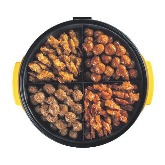 20 balletjes ketjapsaus, 20 balletjes pindasaus, 20 mini-saté indian mystery marinade, 20 mini-saté ketjapsaus, ± 300 gram kippeling, 12 kluifjes naturel.
