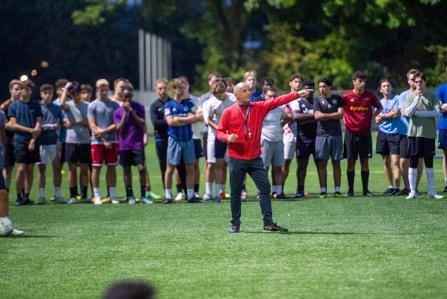 De elf studentes, met rechtsonder Maud Kievits, die gaan wandelen. Foto Guus Denissen