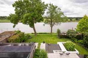 Wie Het Raadhuys via het bordes betreedt, ontwaart terstond een dorpstafereeluitdejarendertigvan de vorige eeuw. Het is een levensgrote foto van het marktplein. Uit het raam hangt een ambtenaar die aan het keuvelen is met een vrouw bij de dorpspomp. Op de achtergrond zijn kasteel De Keverberg en de oude school zichtbaar. Het is het plaatselijke verleden dat wordt geëerbiedigd in een voor de rest modern en strak ingerichte omgeving. Voordeverbouwingenhetinterieur namen ze dochter Kim in de arm. „Zij was net afgestudeerd als architect. Prachtig dat we dit met ons drieën hebben kunnen doen”, glundert Theo. Het terras met tuin aan de achterzijde biedt een panoramischuitzichtopdeglooiendegroene uiterwaarden aan de andere oever van de rivier. In de verte is het rustgevende geronk van voorbijvarende boten soms hoorbaar. Aan de kleinste details is gedacht. Tot en met het whiteboard in een van de vergaderruimtes. Marij glimlacht: „Ook dat mocht geen doorsnee zijn, nee. Dat bord hebben we speciaal uit Denemarken laten komen.” De namen van de vier gastenkamers herinneren aan hun vroegere functie en ‘bewoner’. Ze