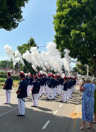 Ik vertel niks nieuws als ik zeg dat de zon schijnt. En hoe. De ‘koperen ploert’ doet haar bijnaam weer eer aan, hierbij geholpen door de klimaatcrisis, die niet langer hoog op de agenda staat, met dank aan Poetin. De zeldzaam zinderende zomerzon schijnt in alle hoeken en gaten. Vindt zelfs haar weg door het gebladerte van het ENCI-bos, dat daardoor op een schilderij van Renoir lijkt: honderden lichtvlekken op de donkere bodem. De zon schijnt ook op het koperwerk van de Maastrichtse fanfares en harmonieën. Dat die juist dezer dagen moeten optreden! Het begon met een buurtconcert van fanfare Sint Servatius op het Theresiaplein. Dirigent Ad Triepels vroeg of de uniformjasjes uit mochten. Het toegestroomde publiek knikte begripvol. ‘Jij hebt al een onderwerp voor je stukje, hè?’, zei een bekende Bieslander tegen mij. ‘Als je maar wat weet’, antwoordde ik. Maar op weg naar huis dacht ik: ja, wat dan? Wat valt over zo’n geslaagd optreden te melden? Dat de buurt weer even buurt is. Het idee ‘gemeenschap’ voor twee uur vormgegeven, tegen de tijdgeest in. Meer kan ik niet bedenken. Minder ook niet.