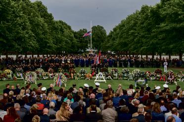 worden toegevoegd. Ook hier respecteert onze regering de stilte. Zaterdag hing de vlag nog halfstok. Toen stonden we stil bij al die mensen die in al die verschrikkelijke oorlogen, die niemand wilde, omkwamen. Gepland, ongewenst, geprogrammeerd of als onschuldige passant. Kortbij, veraf, je naaste, je vijand, wel of niet je bloedgroep. Kransen werden gelegd. Twee minuten zwegen we, ieder met onze eigen gedachten. Wat had ik graag gedachten gelezen. Wat ík dacht? Hoewel erg geïnteresseerd in de historie en vaak terugkijkend naar hoe het was, betrapte ik me erop dat ik dit keer vooruit keek. Geen 80 jaar, niet naar de volgende jubileum van Bevrijdingsdag, maar een jaar. Hoe staan we er volgend jaar voor? In ons steeds verder polariserende hakken-in-het-zand-landje? Met de houding en opvattingen van Trump, Xi, Poetin, Netanyahu? Wat brengt de NAVO-top in Den Haag ons? Draagt 80 miljard bij aan een geruster gevoel over vrijheid? Ik kijk naar mijn kleinzoon van ruim zeven maanden. Hij is nog onbekommerd om wat hem te wachten staat. Rustig spelend, weliswaar in zijn box, maar in vrijheid. Hoe zal ik hem over een paar jaar uitleggen wat 4 en 5 mei betekent, wat we herdenken en wat we vieren. En hoe de vlag moet hangen: halfstok of in top?