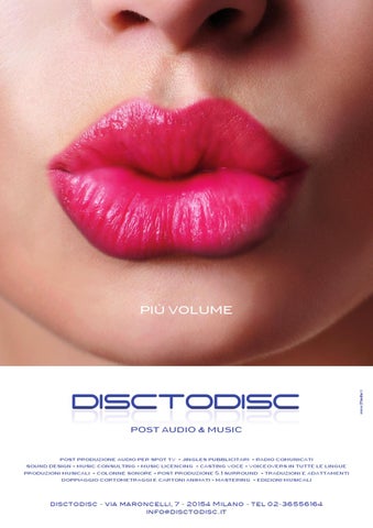 DISCTODISC POST AUDIO & MUSIC Disctodisc. Post-produzione audio, composizione musiche originali, ampia scelta di voci. post produzione audio per spot tv - jingles pubblicitari - radio comunicati sound design - music consulting - music licencing - casting voce - voiceovers in tutte le lingue produzioni musicali - colonne sonore - post produzione 5.1 surround - traduzioni e adattamenti doppiaggio cortometraggi e cartoni animati - mastering - edizioni musicali