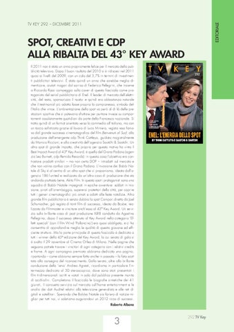 SPOT, CREATIVI E CDP ALLA RIBALTA DEL 43° KEY AWARD Dicembre 2011 - N. 292 - e 6