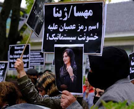 Einen Monat nach Beginn der Proteste im Iran gegen die Sit tenpolizei, die für den Tod der 22-jährigen Mahsa Amini ver antwortlich sein soll, verhängt die EU Sanktionen gegen die Sittenpolizei und zehn andere Organisationen und Institutionen des Landes. Zu den Sanktionen zählen Vermögenseinfrierungen sowie Einreiseverbote von Verantwortlichen, das haben die EU-Außenminister*innen Mitte Oktober bei einem Treffen in Luxemburg beschlossen. Hält die Gewalt im Iran weiter an, werden weitere Sanktionspakete folgen, versichert die deutsche Außenministerin Annalena Baerbock. Bei den Protesten im Iran sind bereits mehr als 200 Menschen ums Leben gekommen, weil sie für die Rechte und Selbstbe stimmung von Frauen und Mädchen auf die Straße gingen, mehrere Hundert wurden inhaftiert. Iranische Aktivist*in nen auf der ganzen Welt zeigen sich vermehrt kämpferisch, so auch Shohreh Bayat, die in London lebt. Sie hält in einem Interview mit der BBC fest: „Es handelt sich nicht mehr um einen Protest. Es ist eine Revolution. Es ist sehr wichtig, dass die Welt auf der richtigen Seite der Geschichte steht. Wir kämpfen für Freiheit, für Frauen- und für Menschenrechte.”