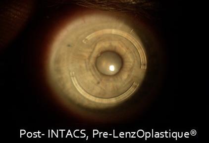 Instead, rehabilitation was staged with least intervention. INTACS were first used to stabilize ectasia, flatten keratometry and reduce astigmatism from 23.5 D to 1.4 D, making the cornea measurable. Months later, topical, sutureless cataract surgery with a toric implant