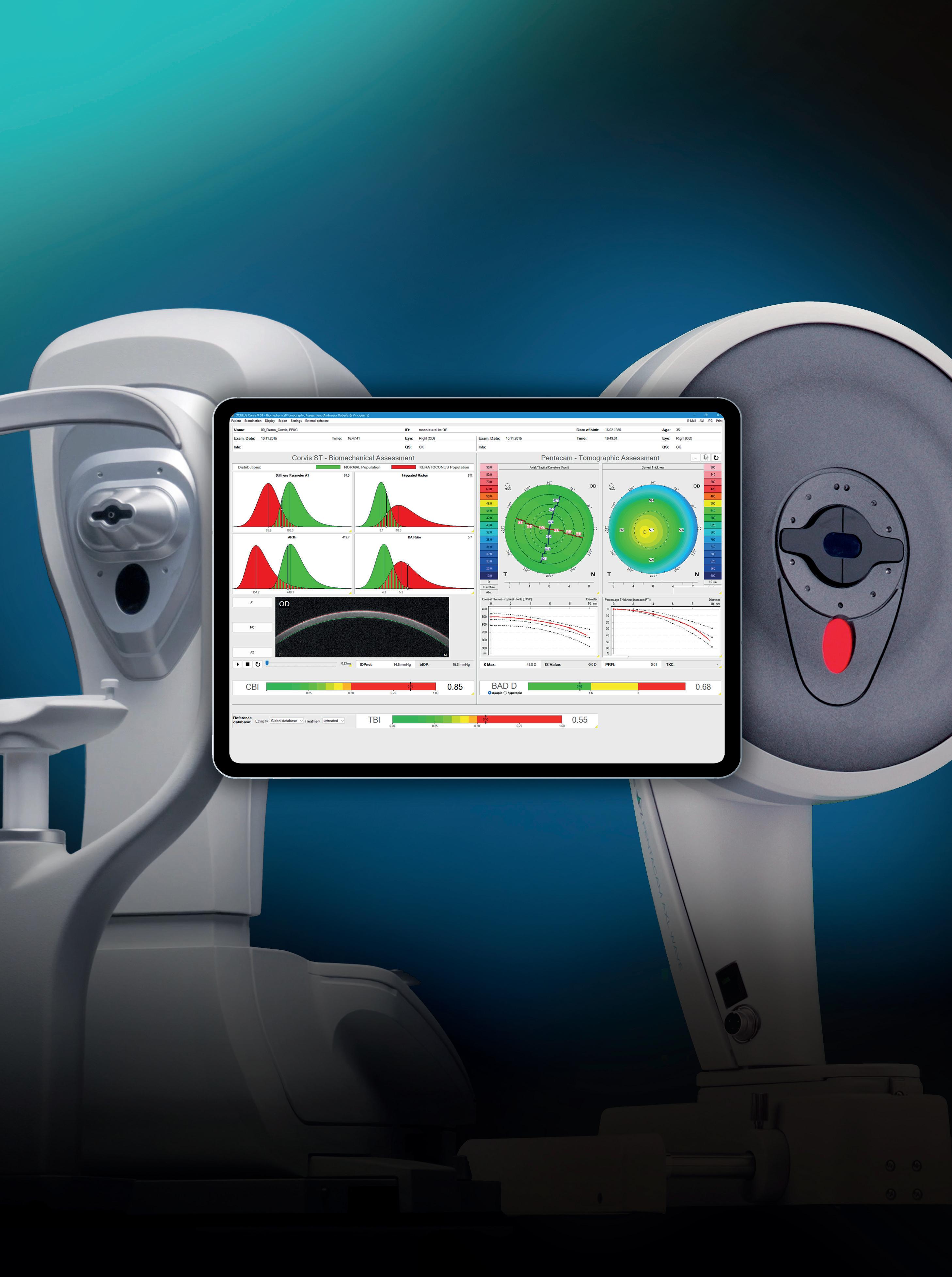 The Tomographic Biomechanical Index, or TBI, provides a unique combined expression of Corvis® ST und Pentacam® measurement data. It allows the risk of corneal ectasia to be assessed with greater reliability than ever before. The TBI assists you in selecting the optimal treatment based on sound reasoning.
