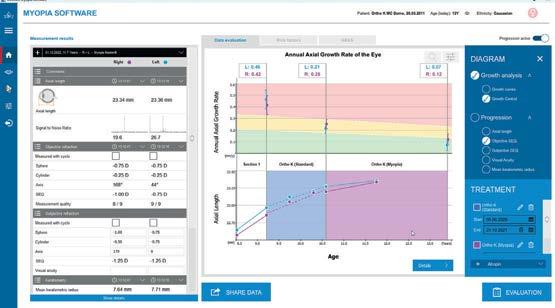 The OCULUS Myopia Master® and Pentacam® AXL WAVE support myopia detection, risk assessment, progression projection, and treatment efficacy analysis. Leverage exclusive growth curves and customized reports to support patient education, conversions, and compliance. Fit and evaluate ortho-k lenses while screening corneal health and stability on the Pentacam® AXL WAVE.