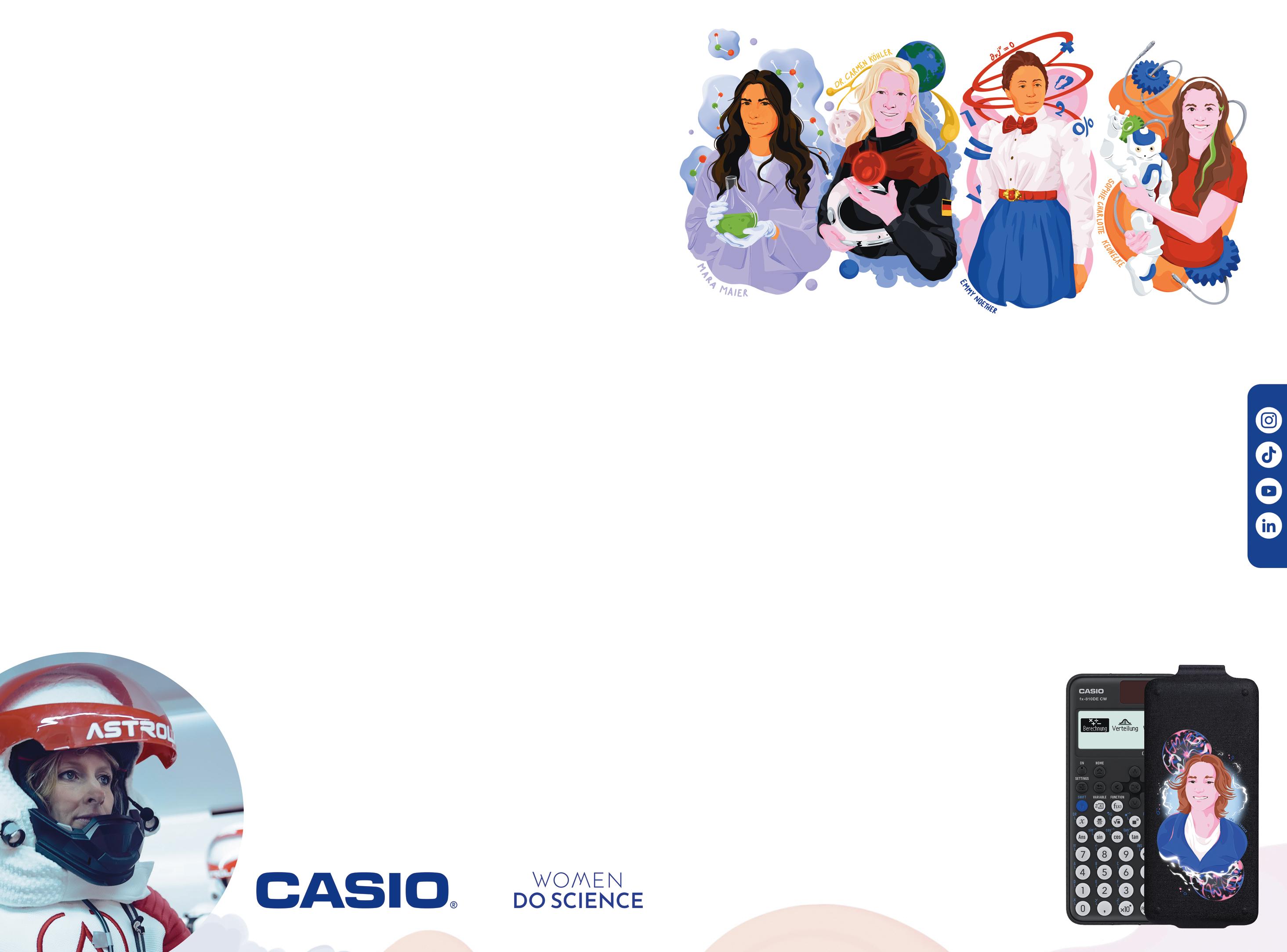 Lehrkräfte und Schulen finden bei Women Do Science Lehrmaterialien und Unterrichtsideen zur MINT-Förderung, u.a. auch illustrierte Cover für die Rechnerserie fx-810DE CW. Bildungspolitiker*innen, die Synergien für Vielfalt und Innovation sehen, sind herzlich eingeladen, mit CASIO ins Gespräch zu kommen.