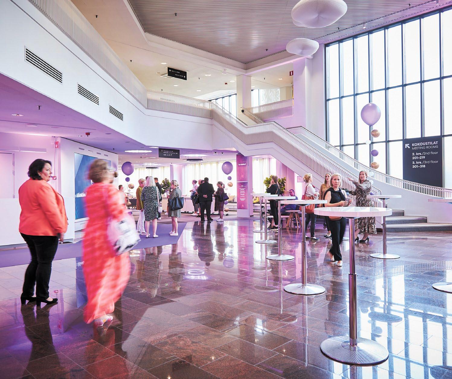 – Kannattaa hieman ravistella ajatuksia siitä, minkälaiset tilat esimerkiksi omalle kokoukselle olisivat sopivimmat ja mistä sellaiset parhaiten löytyvät. Suuren talon sisälle kätkeytyy monenlaisia mahdollisuuksia myös pienemmille tapahtumille ja intiimeille tilaisuuksille. Samalla saatavilla ovat kuitenkin kaikki ison toimijan edut, sanoo Business Manager Anne Bask Messukeskuksen Events & Congress -tiimistä. Messukeskuksessa järjestetään omien messutapahtumien ohella yli 500 erilaista tilaisuutta vuosittain. Näiden joukkoon mahtuu niin suuria gaaloja, yhtiökokouksia kuin pienempiä asiakasja yritystapahtumiakin. – Kokoussiivessämme on 40 erilaista kokoustilaa. Pienempien kokousten lisäksi erityisen suosittuja meillä ovat päivän tai parin mittaiset yritystapahtumat, seminaarit, näyttelyt ja näiden kaikenlaiset yhdistelmät. Esimerkiksi messutapahtumien näytteilleasettajat hyödyntävät mielellään mahdollisuuksia järjestää messujen yhteydessä omia pienempiä kokous- ja oheistilaisuuksia.