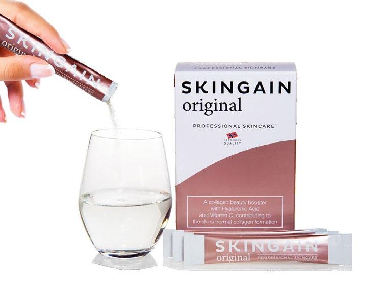 SKINGAIN original kollageeni -juoma pitää ihoni kimmoisana ja vahvistaa hiuksiani. Se tukee samalla nivelteni hyvinvointia ja on siksi minun valintani.
