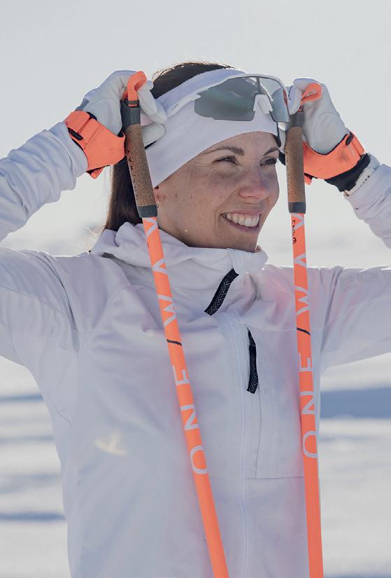 Som nyförlöst har jag lyssnat extra på kroppen och jobbat med att stärka bäckenbotten. Som tidigare elitskidåkare har hon en särskild kärlek till vintern.