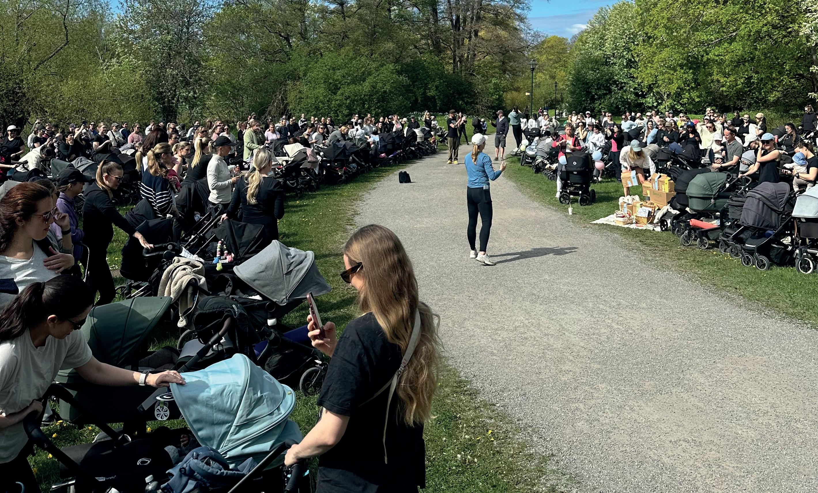 Varje måndag samlas föräldrar med barnvagnar för en cirka fem kilometer lång promenad genom Djurgården. Längs vägen gör gruppen stopp för enkla övningar för styrka & rörlighet anpassade för kroppen efter graviditet. Vissa deltagare bor runt hörnet och har promenaden som en del av sin vardag, medan andra reser från andra delar av Stockholm för att vara med.