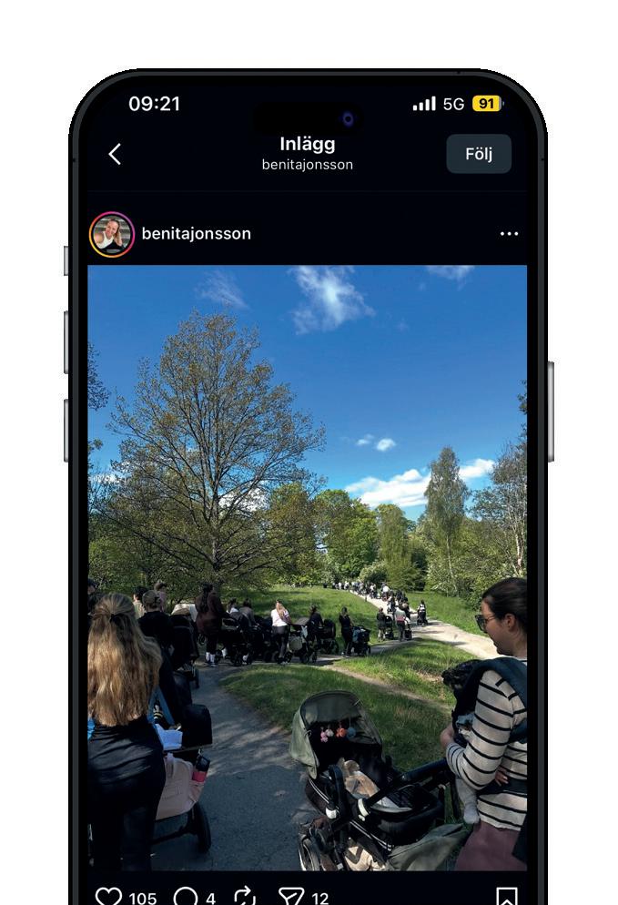 En måndagsförmiddag på Djurgården i Stockholm rullar ofta en lång rad barnvagnar fram längs gångvägarna. Mitt i gruppen går Benita Jonsson, fysioterapeut och personlig tränare med specialisering på träning under och efter graviditet. Hon leder Aktiv Barnvagnspromenad, ett initiativ som genom åren samlat hundratals mammor som vill komma ut, röra på sig och träffa andra i samma livsfas.