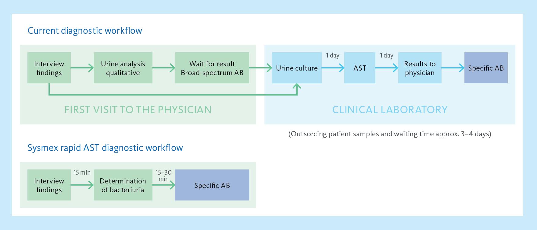 The Sysmex PA-100 AST System reduces the time for UTI diagnosis to just 15 minutes and determines optimal antibiotics within 30 minutes.
