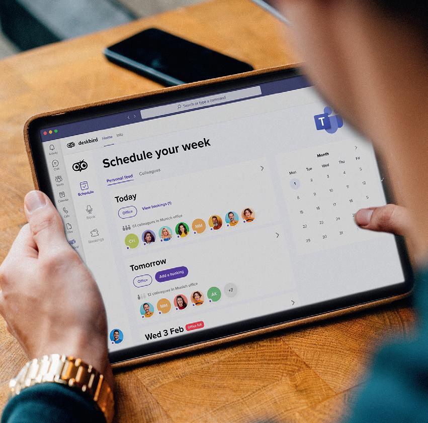 The best hybrid management technology should be easy to integrate with other tools and have a user-friendly interface to encourage better organisation among staff. “For example, employees can use apps like ours to book parking spaces, desks, meeting rooms and track office occupancy,” adds Cossu.