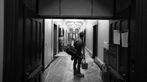 в гостиницах сперва в Великобритании, а затем в Оттаве.