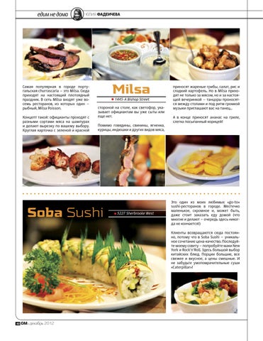 Это один из моих любимых «go-to» sushi-ресторанов в городе. Местечко маленькое, скромное и, может быть, даже стоит заказать еду домой (что многие и делают – очередь здесь никогда не кончается!) Клиенты возвращаются сюда постоянно, потому что в Soba Sushi – уникальное сочетание цена-качество. Последуйте моему совету – попробуйте маки New York и Rock’n’Roll. Здесь большой выбор китайских блюд. Порции большие, все свежее и вкусное, а цены смешные. И не забудьте умопомрачительные суши «Сaterpillar»!