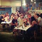 Restaurant transforms at night, as local DJs spin live music under LED lighting and video projection.
