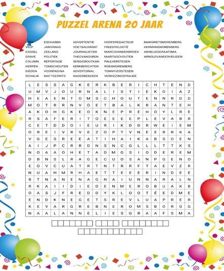 Waar veel collega-kranten in de regio in de afgelo pen jaren zijn verdwenen, is Arena – samen met nieuwssite Arenalokaal.nl – springlevend gebleven. Al 20 jaar zijn we een vaste nieuwsbron en een vertrouwd gezicht in de regio. Dat hebben we te danken aan onze vele lezers, adverteerders en (oud-)medewerkers.