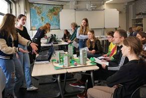 siteit, waterafvoer bij hevige regenbuien en wateropvang bij droogte. In Youtropolis willen de leerlingen de CO2-uitstoot compenseren door veel groen in de stad. Wonen doe je in appartementen en voor grotere gezinnen in huizen. Windmolens staan aan de rand van de stad. Op de daken is overal groen te zien. “Stenen eruit!”, is het devies. Om in de stad te komen neem je het elektrisch OV. Er zijn parken in de