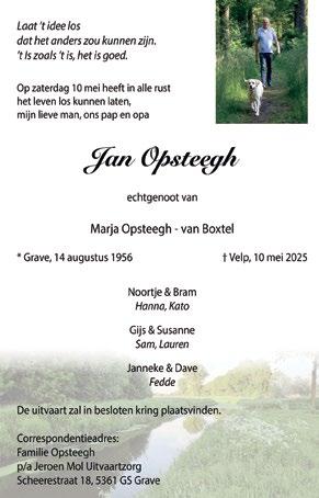 sterk sociaal hart”, gaf de wethouder aan. “Als voorzitter van de afdeling Ravenstein van de Zonnebloem regelt en organiseert ze talloze activiteiten: van vergaderingen tot het verzorgen van kerstpakketjes en een boottocht voor vrijwilligers. Ondanks een zware periode in 2024, toen ze haar bekken brak na een val, bleef ze zich onverminderd inzetten voor de organisatie.” Daarnaast is Jacqueline oprichtster van Lusira, een initiatief dat mensen