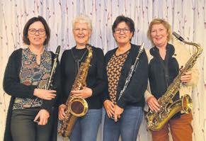Aan tafel zitten vier enthousiaste muzikanten, die in 2018 gestart zijn in de 30+ klas en al vanaf 2020 met het orkest mee repeteren en optreden. Ook speelden deze muzikanten mee tijdens de Proms. Voor hen een waar persoonlijk hoogtepunt. Maybritt van Noije, Monique Franken, Henriëtte van Uden en Amica de Kroon (zie foto) vertellen over hun ervaringen met de 30+klas. Achteraf stellen de dames vast dat ze vanaf het begin in 2018 in een goed gestructureerd opleidingstraject zijn begeleid. “Het voelde meteen goed, als in een warm bad. Een infoavond gevolgd door enkele repetities waarbij je als toehoorder naast en tussen muzikanten zat. Enerzijds om de sfeer te proeven in de vereniging en anderzijds om je kennis te laten maken met alle instrumenten waaruit je een vrije keuze kan maken.” Bij Henriëtte en Amica stond de keuze voor saxofoon al vast. Maybritt en Monique kozen na informatie voor klarinet.