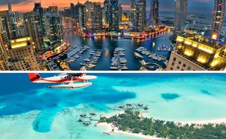 de Malediven vliegen. Waarom deze bestemmingen nog meer een goede combinatie zijn? Metropool Dubai heeft enorm veel te bieden. De stad kent diverse shop ping malls, waarvan drie hele grote en bekende: Dubai Mall, Mall of the Emirates en Dubai Marina Mall. In de Mall of Emirates ligt zelfs een skibaan! De malls zijn dan ook niet alleen om te shoppen, maar ook een bezienswaardigheid op zich. Daarnaast heb je natuurlijk nog de beroemde Burj Khalifa, het 7-ster renhotel Burj Al Arab, de indruk wekkende haven, het bijzondere palmeiland en de Dubai Creek met de oude Souk. Genoeg te doen en te beleven dus. En hoe lekker is het om jouw stedentrip af te sluiten op een tropische bestemming met witte zandstranden, een azuurblauwe zee