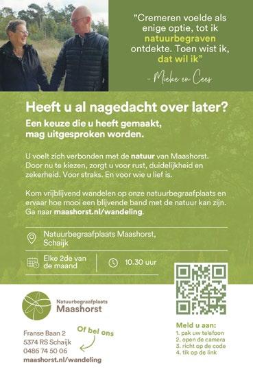 • Natuurgebied De Maashorst gezond, met voldoende groene BOA’s. Maashorst mooier, schoner, groener, veiliger en socialer.