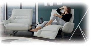 Altijd zo'n 30 modellen relaxbanken in onze showroom