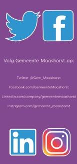 www.gemeentemaashorst.nl Volg Gemeente Maashorst op: Twitter @Gem_Maashorst Facebook.com/GemeenteMaashorst LinkedIn.com/company/ gemeentemaashorst Instagram.com/gemeente_maashorst
