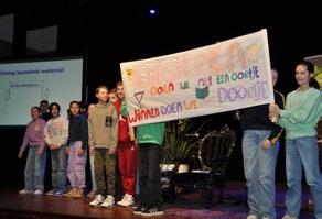 Naast het voorlezen was er ook een spandoekenwedstrijd, die extra sfeer en teamgevoel bracht in de zaal. De Kreek’l (foto) en Kindcentrum Aventurijn/Florent werden bekroond met de prijs voor de beste spandoeken. De Kreek’l wist het publiek te enthousiasmeren met hun krachtige yell ‘Luisteren doen we met een oortje, winnen doen we met Doortje!’ Dit zorgde voor een vrolijke sfeer, waarbij alle deelnemers elkaar enthousiast aanmoedigden.
