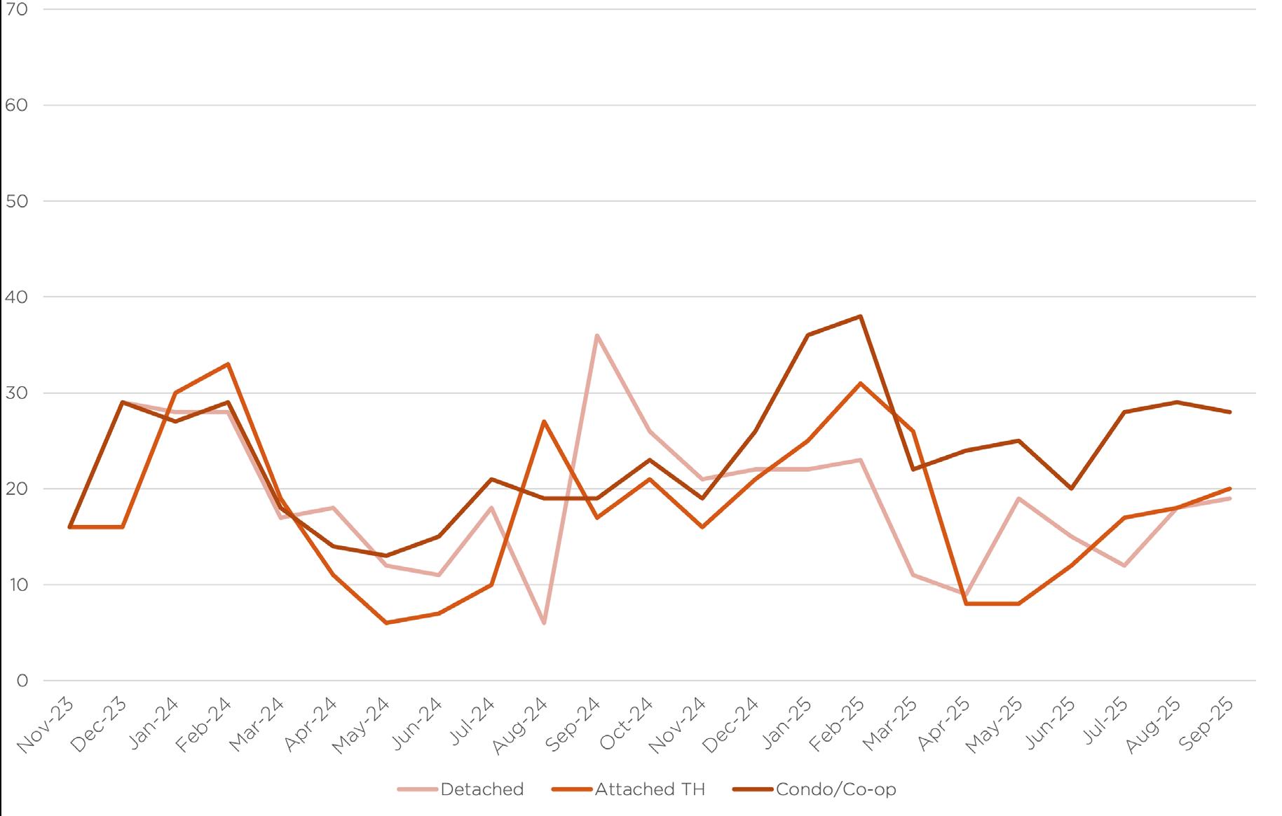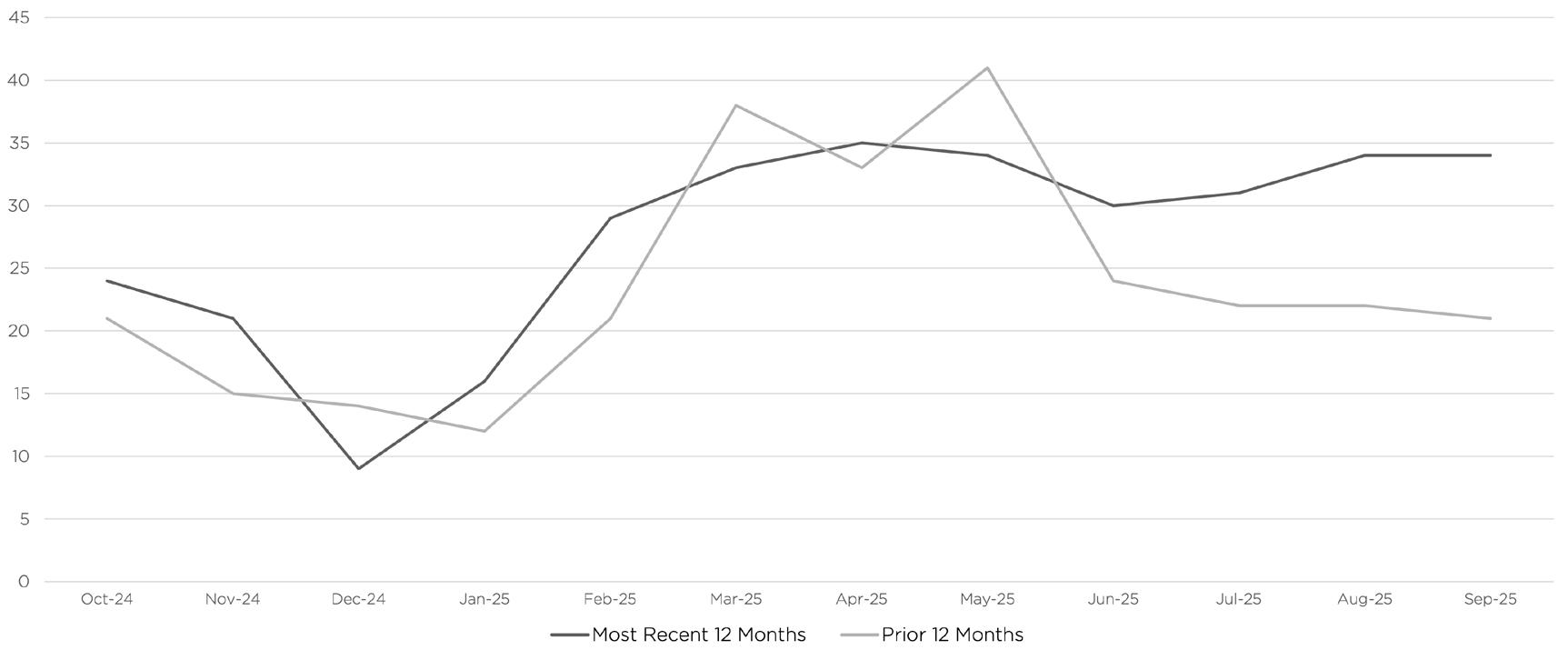 Source: Data provided by SmartCharts by ShowingTime, based on listing activity from BrightMLS (October 2020 - September 2025). All material presented is intended for information purposes only. This material is based on information that we consider reliable, but we do not represent that it is accurate or complete and it should not be relied upon as such. If your property is currently listed with another real estate broker, please disregard our marketing efforts. It is not our intention to solicit.
