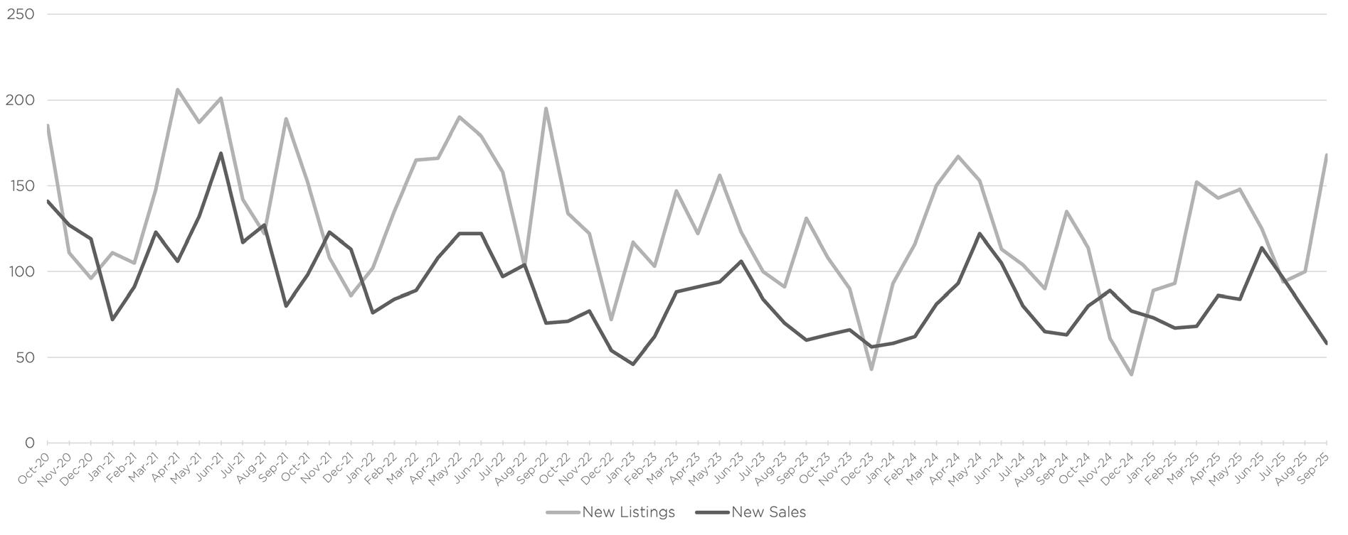 Source: Data provided by SmartCharts by ShowingTime, based on listing activity from BrightMLS (October 2020 - September 2025). All material presented is intended for information purposes only. This material is based on information that we consider reliable, but we do not represent that it is accurate or complete and it should not be relied upon as such. If your property is currently listed with another real estate broker, please disregard our marketing efforts. It is not our intention to solicit.