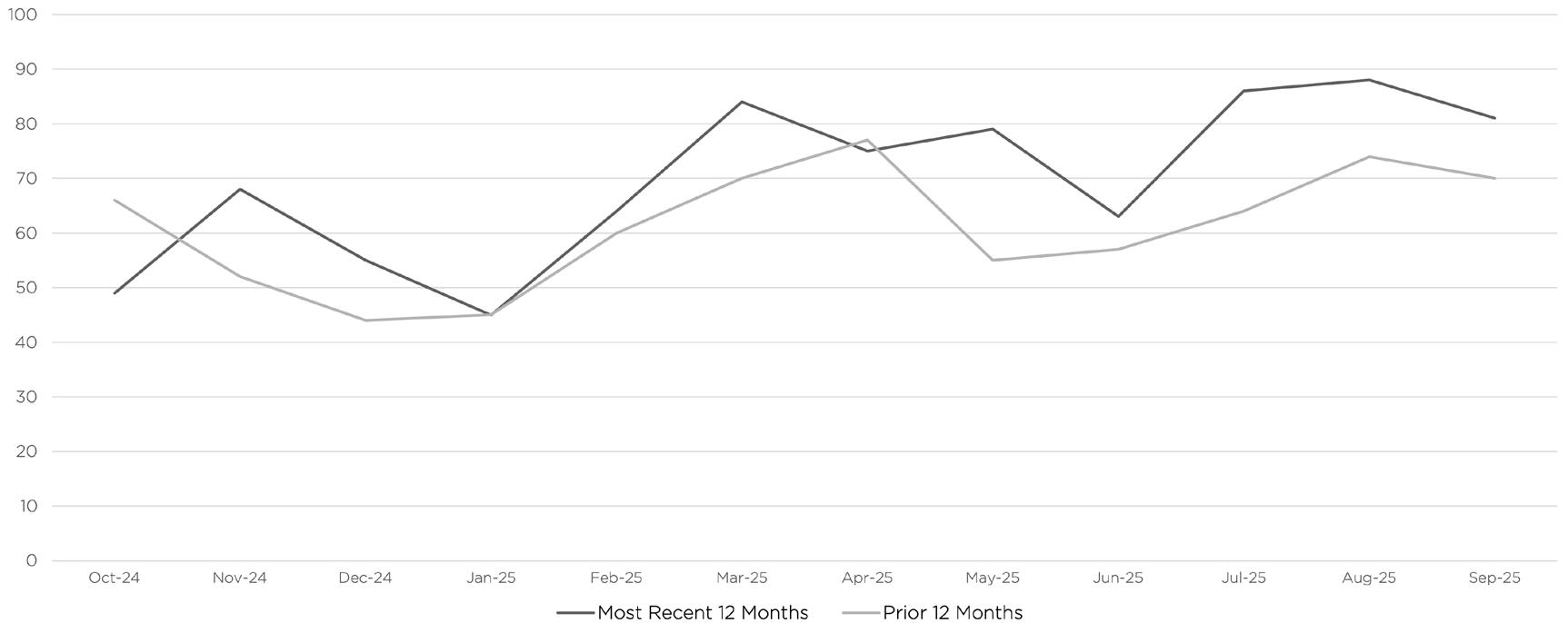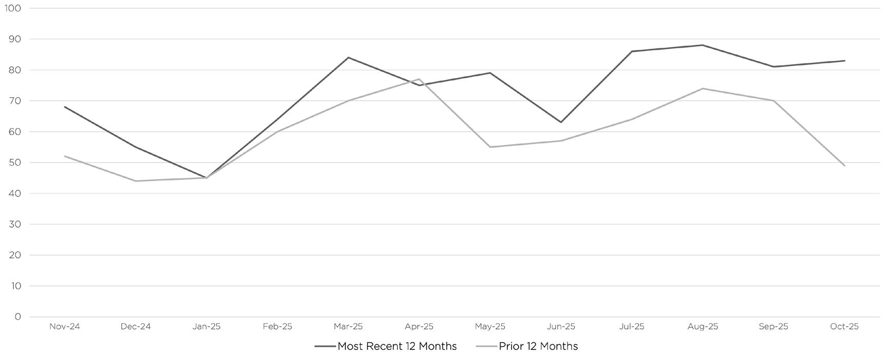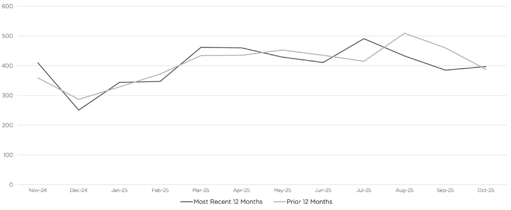 Source: Data provided by SmartCharts by ShowingTime, based on listing activity from BrightMLS (November 2020 - October 2025). All material presented is intended for information purposes only. This material is based on information that we consider reliable, but we do not represent that it is accurate or complete and it should not be relied upon as such. If your property is currently listed with another real estate broker, please disregard our marketing efforts. It is not our intention to solicit.