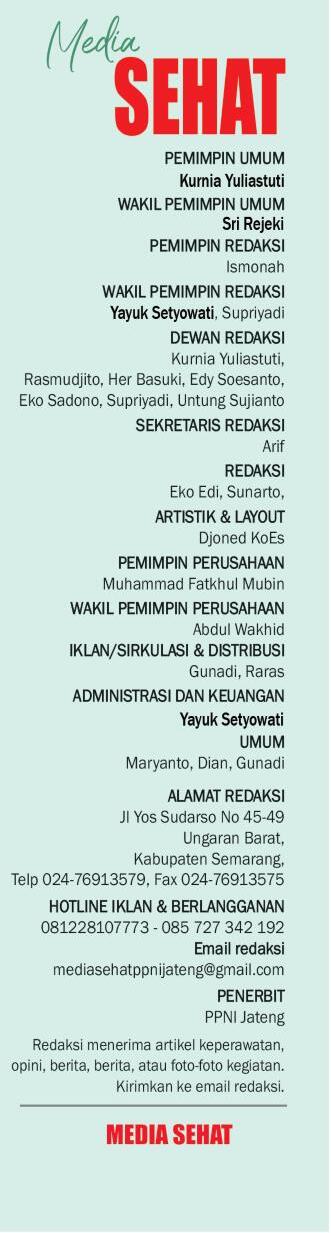 yang dikenal “The Lady with the Lamp” Teristimewa, redaksi juga berkesempatan menampilkan kegembiraan perawat Kota Semarang memiliki gedung sekretariat baru senilai Rp 10 miliar yang dinamai Graha Perawat Semarang Plus kelegaan luar biasa dari Ketua DPD Kota Semarang, Junait, selepas gedung tersebut terwujud.