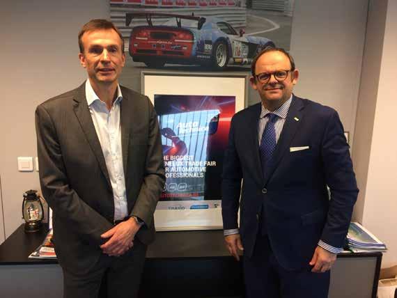 Michel Vervekken, vicevoorzitter FAM, (links) en Didier Perwez, voorzitter Traxio, (rechts) kijken uit naar 24 maart met de opening van de 21ste editie van Autotechnica.