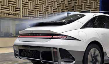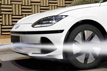 van het voertuig. Daarnaast heeft een aerodynamisch design niet alleen een aanzienlijke invloed op het rijbereik van de auto, maar ook op de rijstabiliteit en het windgeruis. HMG onderzoekt daarom verschillende mogelijkheden om de luchtweerstandscoëf-