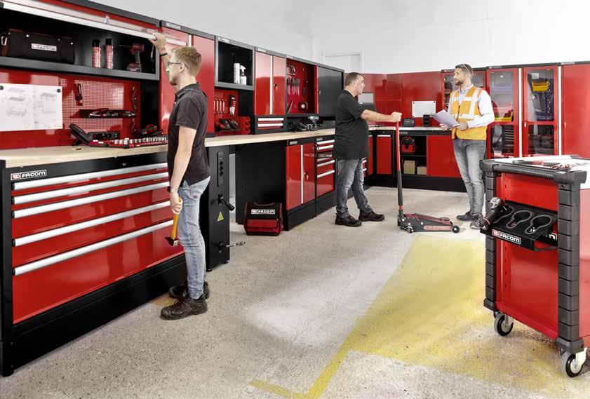 Een efficiënte werkplaats is ook een overzichtelijke werkplaats. Opbergsystemen, werkwagens, kasten en de indeling van de werkplekken hebben niet alleen te maken met esthetiek, maar ook met productiviteit. Om onproductieve tijd te verminderen, moet de werkruimte strikt worden gestructureerd. Anders loopt men het risico tijd en klanten te verliezen, maar ook uw personeel te demotiveren omdat het verdwaalt in een onduidelijke organisatie of omgeving. Persoonlijke beschermingsmiddelen passen in dezelfde logica.
