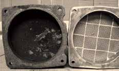 Chemische reiniging is af te raden omdat het filterelement kan verstoppen door de vorming van een harde substantie. Deze proppen creëren zogenaamde hotspots of oververhitte delen in het filterelement. Deze proppen hebben een nefaste invloed op zowel de werking van de filter als de prestaties. Ook barsten in het filterelement zijn mogelijk.