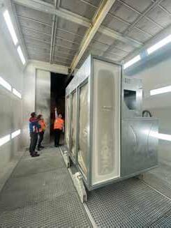 OMIA accorde également une grande importance à l’isolation des panneaux de la cabine. Cette isolation se fait avec une épaisse couche de laine de roche haute densité, doublée et encollée entre les parois métalliques. La laine de roche est très efficace, durable et ignifugée. Cette isolation est cruciale, pour amortir les bruits mais aussi