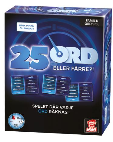 plasto World of entertaiment typ Familje- / ordspel ålder från 10 år antal spelare: 4+ speltid: ca 30 min Spelet där varje ord räknas! Utmana familj och vänner i 25 ord eller färre, ett snabbt och utmanan de lagbrädspel. Få ditt lag att gissa de fem orden på kortet genom att använda så få ord (ledtrådar) som möjligt. Ett annorlunda brädspel där det lönar sig att tänka innan man pratar.