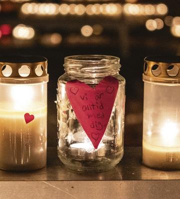 Kärleken tänder ljus i mörkret. Den lägger handen om en svartklädd axel, den fyller på skafferiet, den säger de där tre små orden som avgör allt; ”det finns kaffe”. Den dansar mitt i tystnaden. Mitt i februari, när allt är kallt, dött och fruset, så strösslar kärleken blommor omkring sig där den går. Och som de växer.