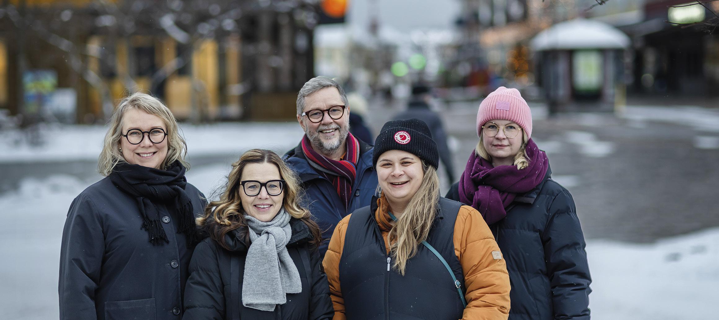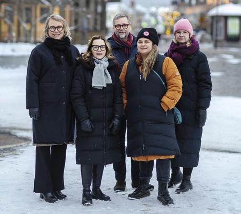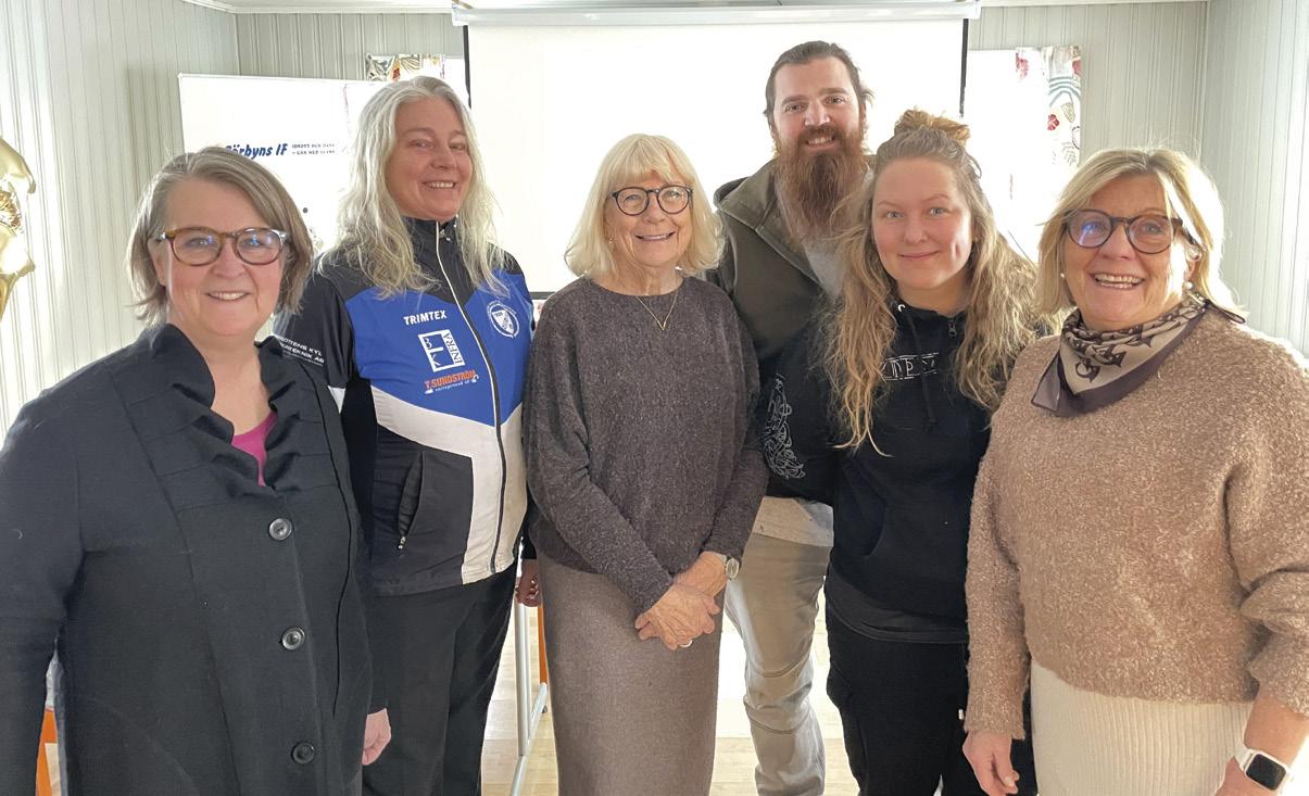 Den glada jubileumskommittén för Sörbyns IF:s etthundraårsfirande. Från vänster: Anna-Karin Andersson, Maria Bergenstråhle, Åsa Karlsson, Adam Carlsson, Emilia Malmström och Monica Dahlström