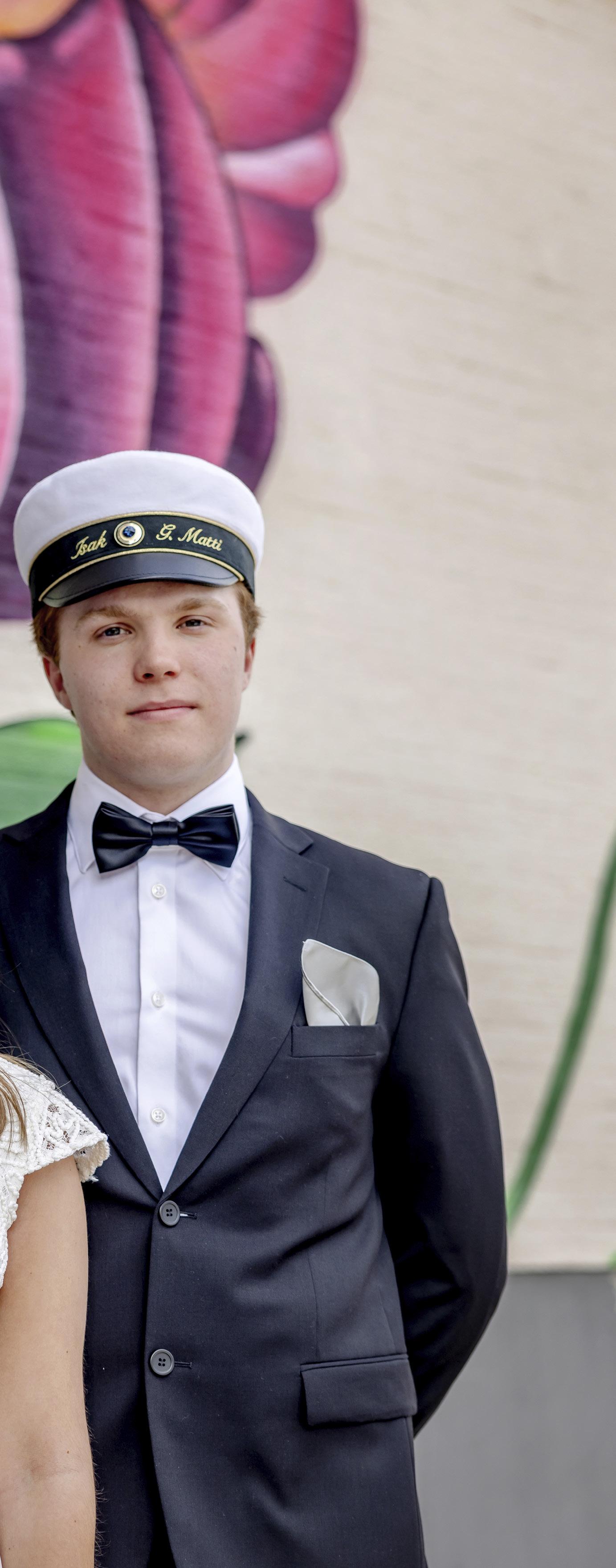 Löfgren entusiastiskt. De är totalt sju från klassen som skall resa i väg dit. Sedan väntar den traditionella studentbalen, i år på Kårbacken. Och lika traditionsenligt utspring och kortege med studentflak genom centrala stan. Vissa saker ändrar man inte på i första taget. Den blå stenen på studentmössan symboliserar teknikprogrammet. I övrigt har de på teknikprogrammet inte skaffat några speciella studentprylar. Mössan räcker gott. Studentskylt är beställd av familjen men den får de inte se i förväg.