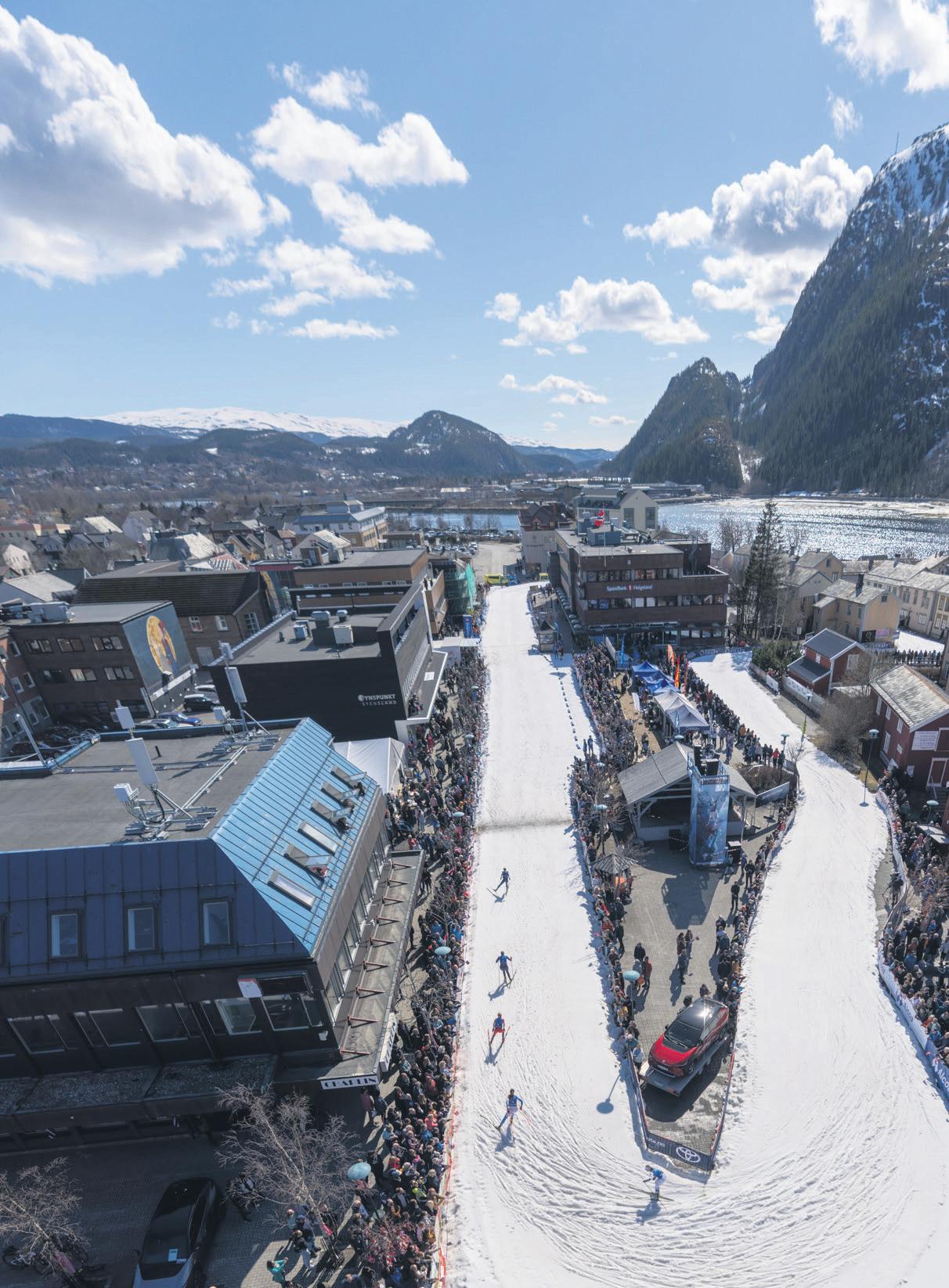 BILAGET DU nå holder i hånda erbareetavmangebidragtilen av Mosjøens største årlige attraksjoner og publikumsmagneter:Bysprinten.Fraåværeen idéunnfangetpåbakrommetav en håndfull ildsjeler og ski-entusiaster,harBysprintenbefestet posisjonen som det største og mest vellykkede arrangementetMosjøenharåbypåiløpet av året. Fortsatt er det ildsjelene og entusiastene som sørger for at alle de tusen brikkene i puslespillet kommer på plass før den store åpningsdagen med barneskirenn. For å få alt dette til stiller flere hundre frivillige opp på fritida, for at noen av verdens beste skistjerner kan avslutte sesongen med et fartsfylt renn gjennom Mosjøens gater, sammen med hundrevis av barn og unge skiløpere fra fjern og nær.