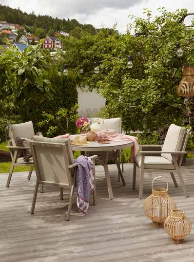 “ Så langt lageret rekker. Utvalget varierer fra butikk til butikk. Eva solseng Sunbrella® taupe chinè, svart aluminium, b 74 x l 195 cm Førpris 9.999 Medlemspris 8.999 Spar 1.000 16.999 Spar 6.000 Kundeklubb Så langt lageret rekker. Utvalget varierer fra butikk til butikk. Sonora hjørnesofa koksgrå aluminium, grå puter, b 278,5 x d 213,5 x h 87 cm. Førpris 22.999 Medlemspris 16.999 Spar 6.000 Sonora bord med regulerbar høyde non-wood borplate, b 85 x 140 x h 40/60 cm. Førpris 9.999 Medlemspris 7.999 Spar 2.000 Finnes også i kalkhvit Sonora 3-seter koksgrå alu, grå puter, b 203 x d 80 x h 74 cm Førpris 11.999 Medlemspris 9.999 Spar 2.000 Sonora hagestol koksgrå alu, grå puter, b 72 x d 72 x h 77,5 cm Førpris 4.999 Medlemspris 3.999 Spar 1.000 Sonora bord med regulerbar høyde koksgrå alu, teak non-wood bordplate, b 85 x 140 x h 40/60 cm Førpris 9.999 Medlemspris 7.999 Spar 2.000 9.999 Spar 2.000 Kundeklubb Så langt lageret rekker. Utvalget varierer fra butikk til butikk. Sonora spisebord koksgrå aluminium, ø 149 x h 74 cm med non-wood Førpris 12.999 Medlemspris 9.999 Spar 3.000 | Sonora spisestol med pute koksgrå aluminium, grå pute, teak non-wood armlener, b 58 x d 68 x h 87 cm Førpris 2.999 Medlemspris 2.499 Spar 500 Så langt lageret rekker. Utvalget varierer fra butikk til butikk. 2.499 Spar 500 Kundeklubb 9.999 Spar 3.000 Kundeklubb 3.999 Spar 1.000 Kundeklubb Darlington spisebord sandfarget aluminium, ø 120 x h 75 cm Førpris 6.999 Medlemspris 4.999 Spar 2.000 | Darlington spisestol sandfarget aluminium, b 70 x d 70 x h 90 cm Førpris 2.999 Medlemspris 2.299 Spar 700 4.999 Spar 2.000 Kundeklubb 2.299 Spar 700 Kundeklubb Så langt lageret rekker. Utvalget varierer fra butikk til butikk. Darlington hjørnesofa m/bord i sandfarget aluminium. Sofa b 256 x d 197 x h 85 cm | Bord l 135 x b 66 x h 75 cm Førpris 19.999 Medlemspris 15.999 Spar 4.000 Henda utendørsteppe 160 x 230 cm Kr 2.099 Så langt lageret rekker. Utvalget varierer fra butikk til butikk. 15.999 Spar 4.000 Kundeklubb