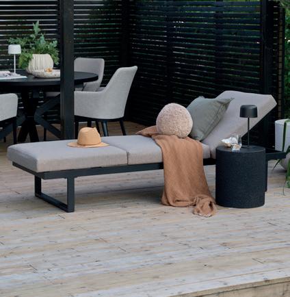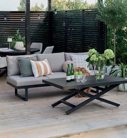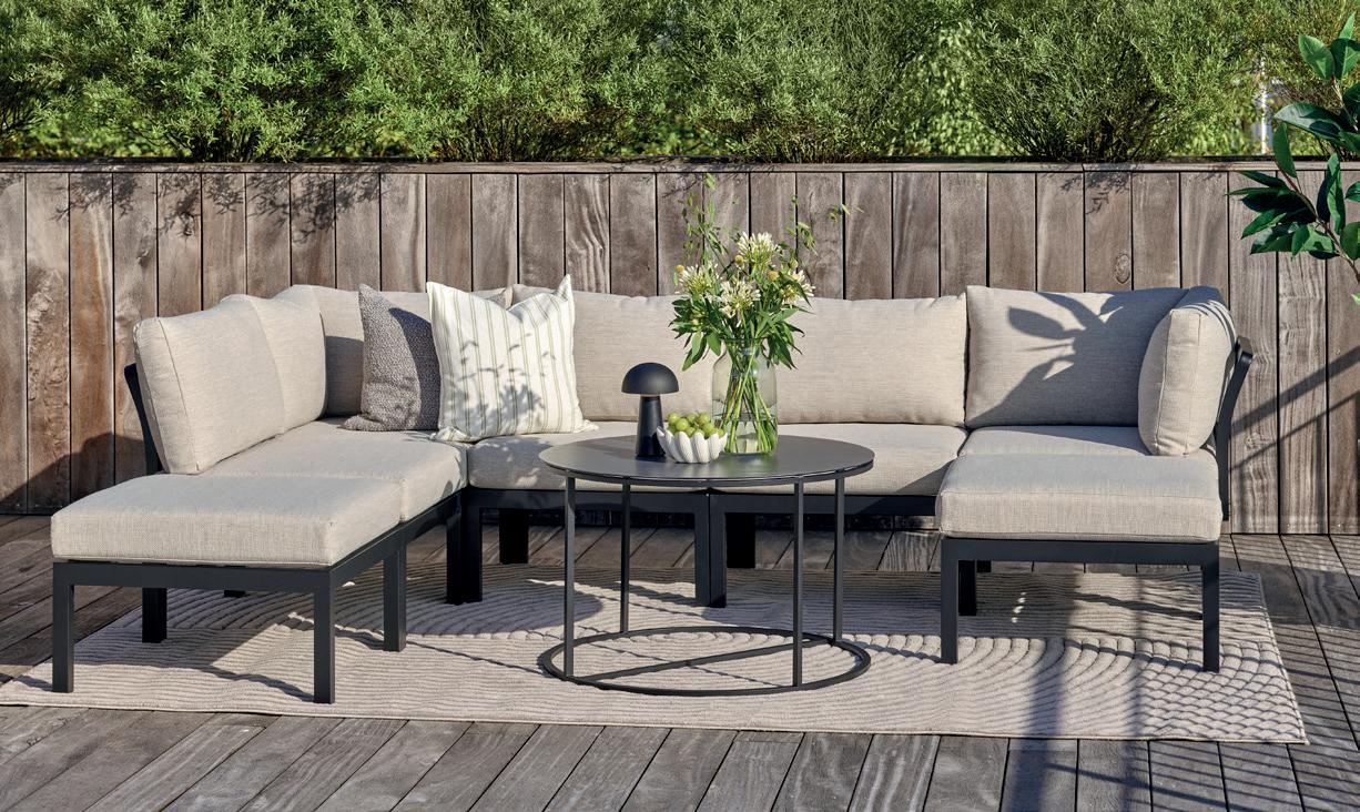 LAX i vannavvisende tekstil; pall 85x85, H 30 cm NÅ 1.199,- (før 1.499,-) Nr. 319553 stolmodul 85x85, H 60 cm NÅ 1.839,- (før 2.299,-) Nr. 319551 hjørnemodul 85x85, H 60 cm NÅ 2.399,- (før 2.999,-) Nr. 319552 solseng 82x160, H 60 cm NÅ 2.399,- (før 2.999,-) Nr. 319550 -20%